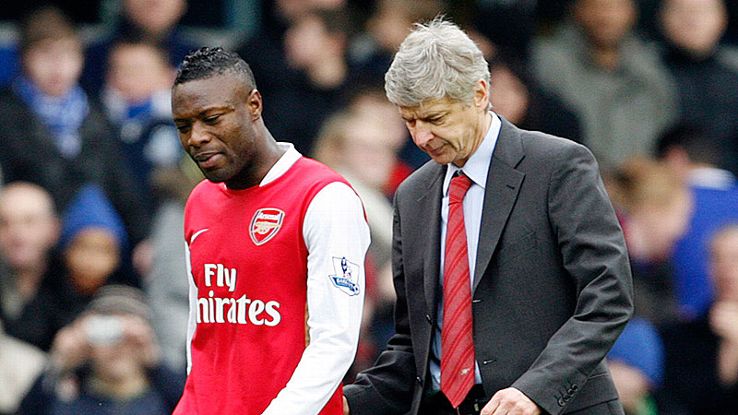 The striker suffered a broken leg in the third minute after a tackle by martin taylor, who was sent off william gallas. 'we had learned of his appointment in the papers and we all shook our heads.